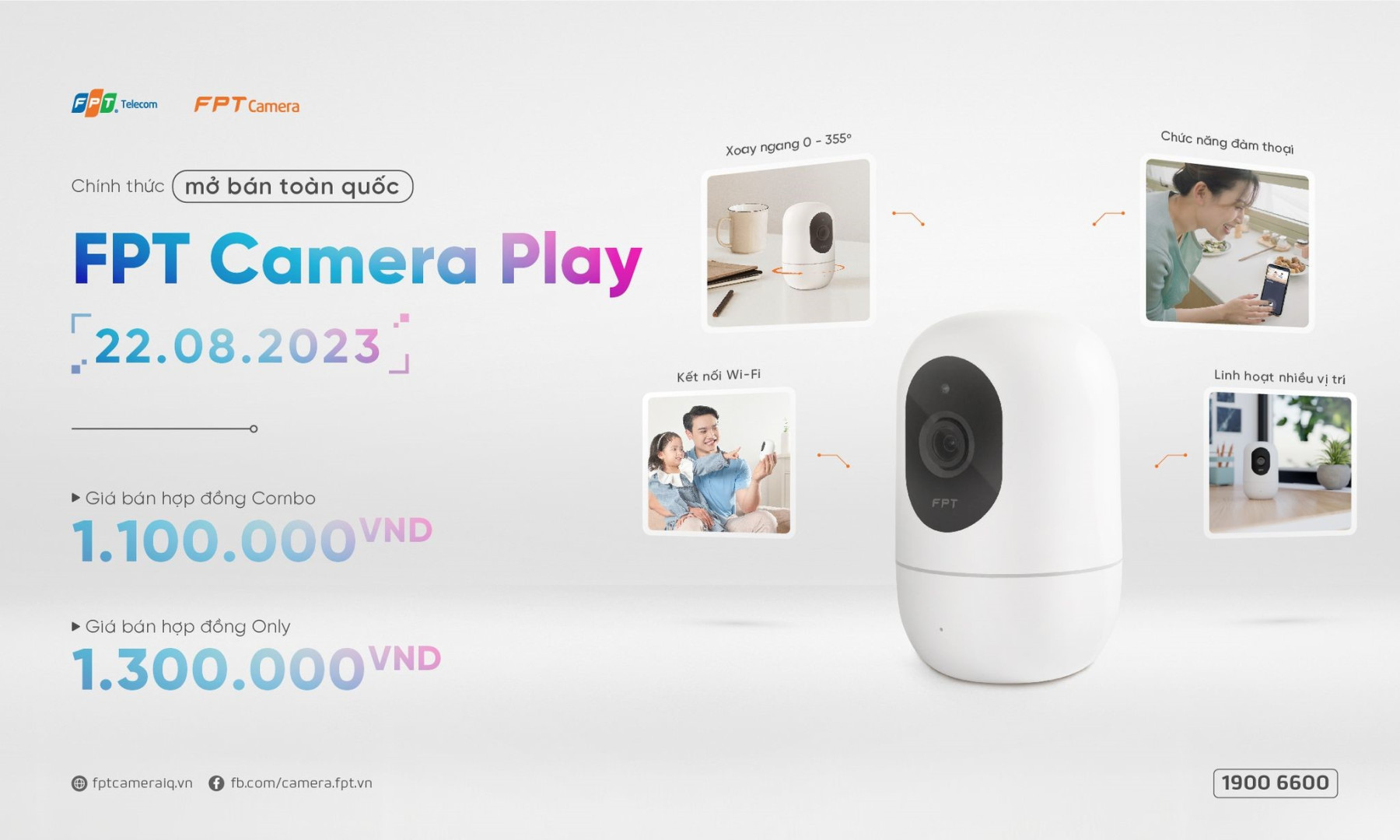Ngày 22/08/2023, FPT Telecom chính thức mở bán FPT Camera Play trên toàn quốc. Với thiết kế tinh tế, hài hòa với không gian, cảm biến hình ảnh Sony full HD. Khả năng xoay ngang từ 0 - 355 độ giúp linh hoạt theo dõi và tuỳ chỉnh góc nhìn, cho phép quan sát không gian rộng lớn. Kết nối Wi-Fi, dễ dàng lắp đặt, linh hoạt chuyển đổi vị trí.