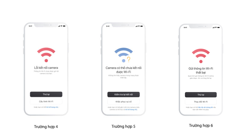 Lưu ý: Trong quá trình camera tiến hành kết nối mạng Wi-Fi, có thể xảy ra các trường hợp sau đây: