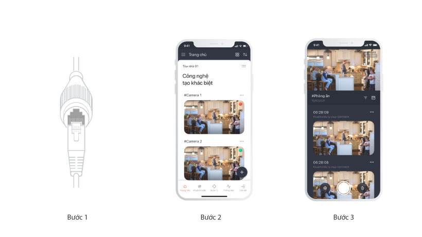 Bước 1: Gắn LAN vào cổng LAN của camera.