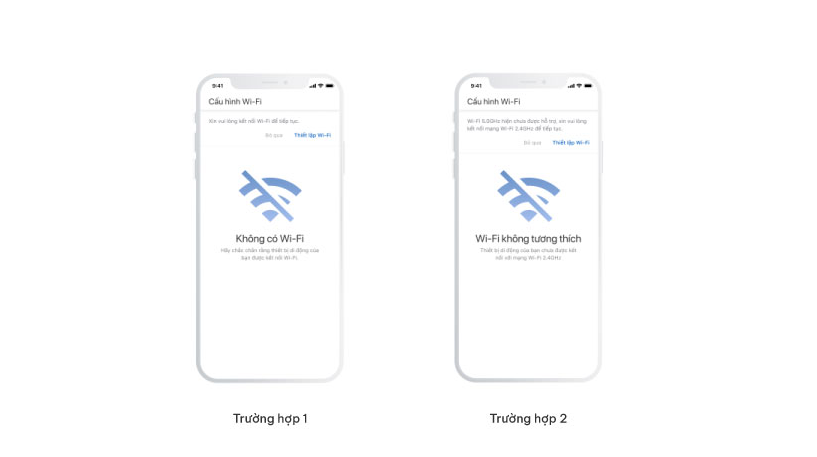 Trường hợp 2: “Không có Wi-Fi - Thiết bị di động của bạn chưa được kết nối với mạng Wi-Fi 2.4GHz.”