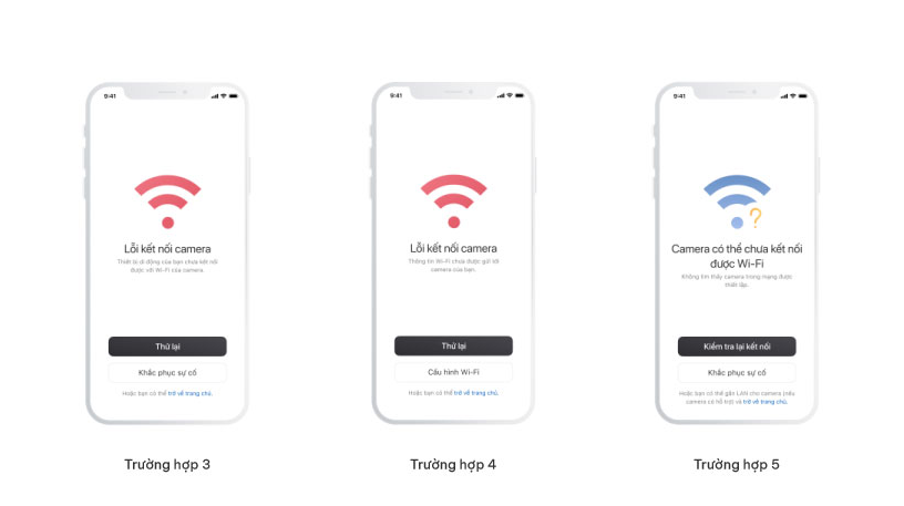 Trường hợp 3: “Lỗi kết nối camera - Thiết bị di động của bạn chưa kết nối được với Wi-Fi của camera.”