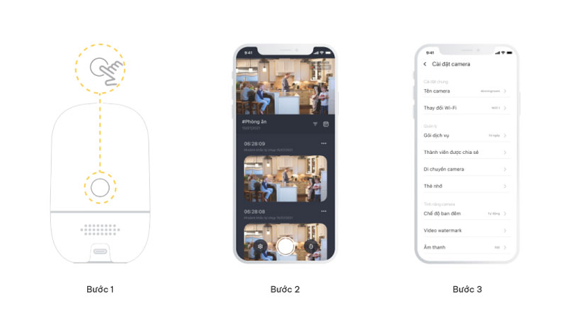 Bước 1: Nhấn giữ nút reset Wi-Fi trên camera 6 giây cho đến khi đèn LED tắt, sau đó quan sát tín hiệu đèn LED, chuyển sang màu trắng và nhấp nháy mỗi 0.2 giây.