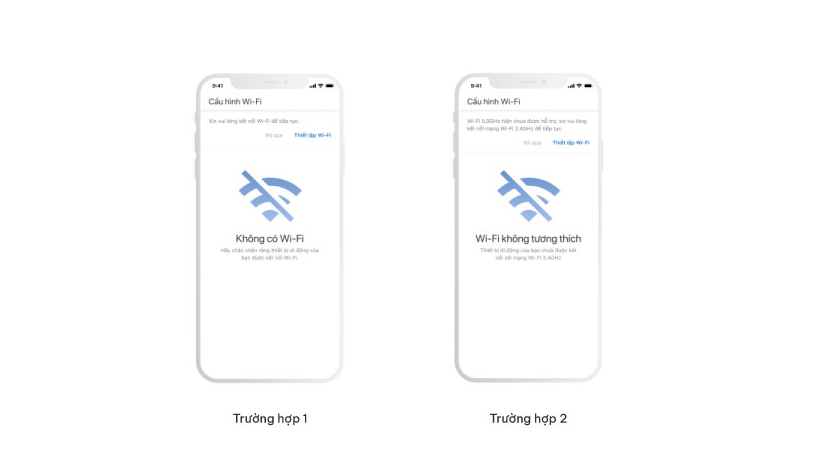 + Trường hợp 1: “Không có Wi-Fi - Hãy chắc chắn rằng thiết bị di động của bạn được kết nối Wi-Fi.”