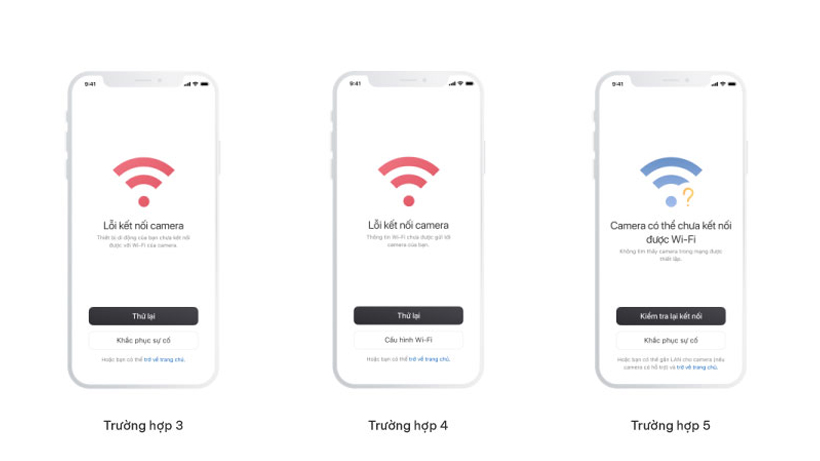 Trường hợp 3: “Lỗi kết nối camera - Thiết bị di động của bạn chưa kết nối được với Wi-Fi của camera.”